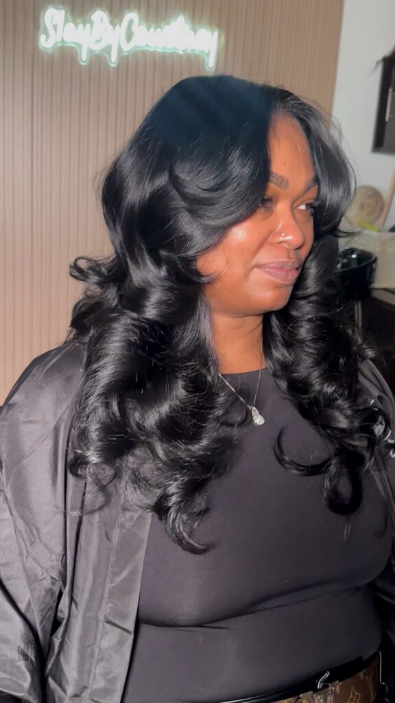 I love going to Courtney for my hair needs! She’s very talented, creative, and cares so much about her clients! When I started going to Courtney about 2 years ago, my hair was damaged and needed a lot of care. Courtney educated me on my hair needs and kept me on an ongoing routine to where my hair is now thriving and growing with her protective styling! I absolutely recommend Slay by Courtney!